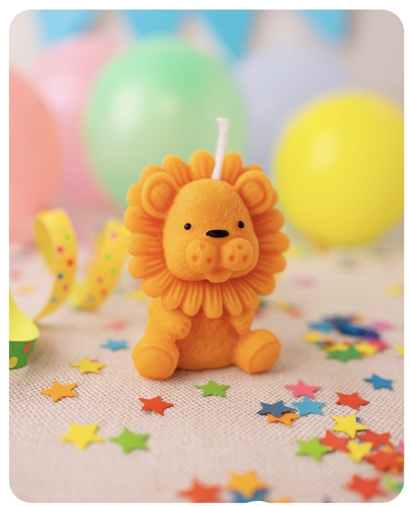 • Design unic: lumânare sculptată manual în forma unui leu drăgălaș – simbol al curajului, forței și regalității.